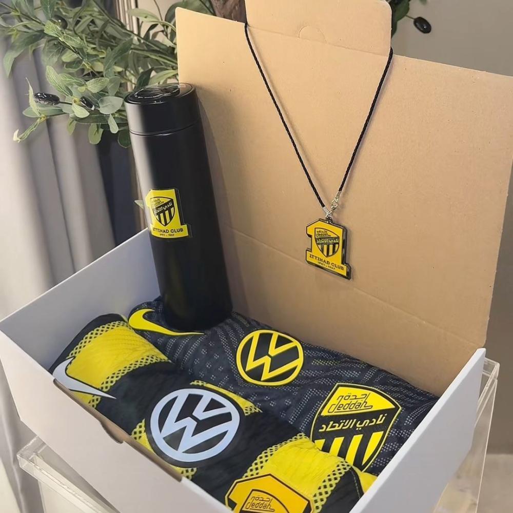 كل قطعة في هذا البكج تعبّر عن الفخر والانتماء، سواء للإهداء أو للاقتناء الشخصي. جودة عالية وتصميم يليق بمشجعي نادي الاتحاد. البكج مثالي للمناسبات الخاصة والتجمعات الكروية
